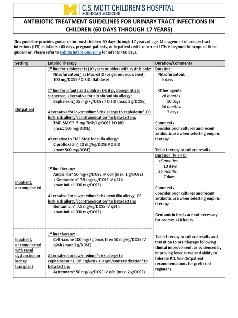 Clindamycin 10 mgkgDOSE PO TID max. Alternative to TMP-SMX2 if sulfa allergy Doxycycline3 22 mgkgDOSE PO BID max. This is a sulfa antibiotic and very popular for treating UTIs.